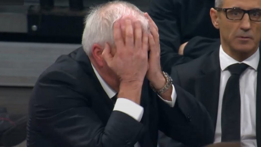 Жељко Обрадовић у неверици на утакмици Евролиге Партизан - Басконија / EuroleagueTV