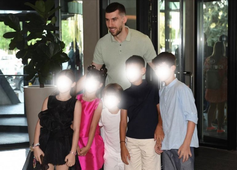 Наши кошаркаши, заправо много веће људине него што висина то наговештава, одазивали су се на молбе тих дечака и девојчица као да су само због њих и ту. А заправо...