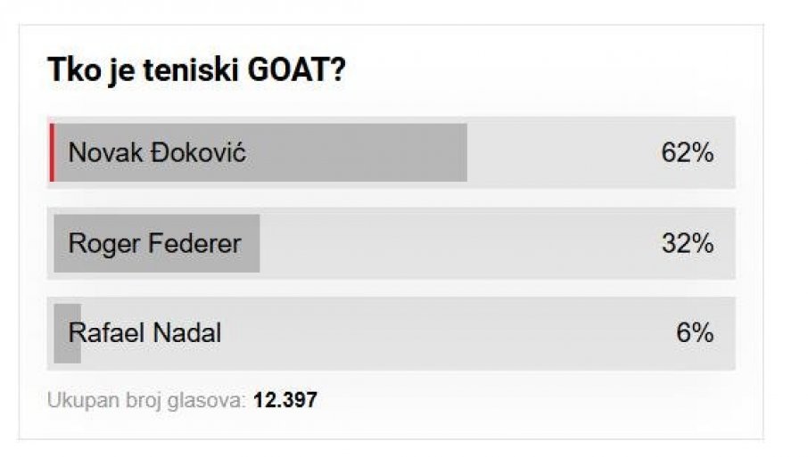 Хрватски портал "Index.hr" је покренуо анкету на ту тему, а тренутно је Новак Ђоковић убедљиво први по броју гласова, са 60 процената, док Федерер држи друго место са 32, а Надал са свега шест процената гласова је на трећој позицији, а треба напоменути да је у анкети учествовало око 12.000 посетилаца наведеног портала.