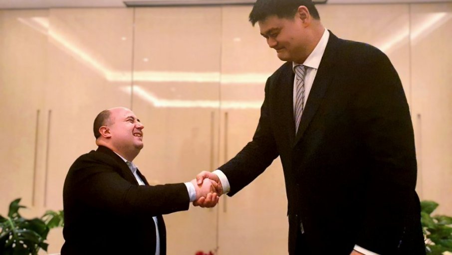 Генерални секретар Министарства спољних послова Србије Душан Козарев, у оквиру завршног дела посете Кини, сусрео се данас у Шангају са легендарним кинеским НБА кошаркашем и донедавним председником Кошаркашког савеза Кине Јао Мингом.