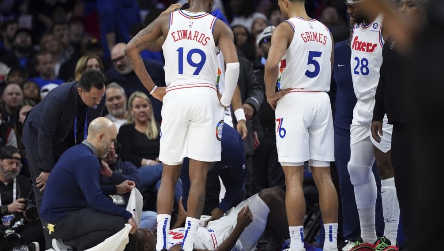 Повређени Тајрис Макси, кошаркаш Филаделфије севентисиксерс / FOTO: Tanjug/AP