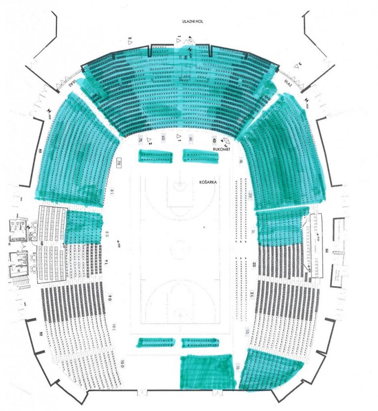 • Затварањем дела трибина за наредне утакмице у АБА лиги (са изузетком „свечане ложе“), као и места на трибини иза коша, одмах поред тунела и места поред терена директно иза кошева.