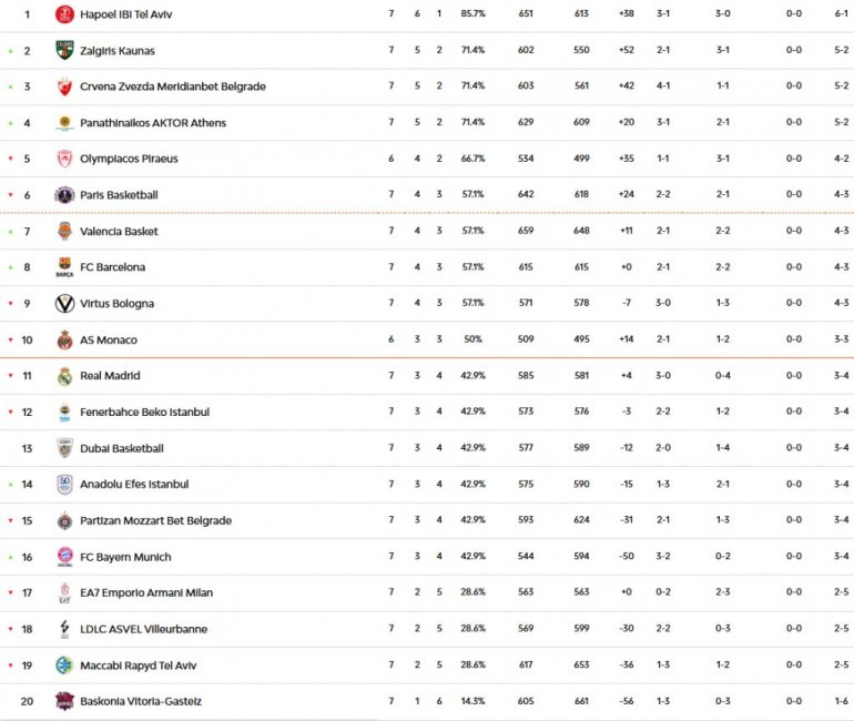 Партизан је сада уписао и четврти пораз из седам утакмица у Евролиги, те га је то гурнуло на веома слабу 15. позицију у Евролиги, бар у овом моменту, када се гледа кош разлика са осталим екипама које имају исти скор.