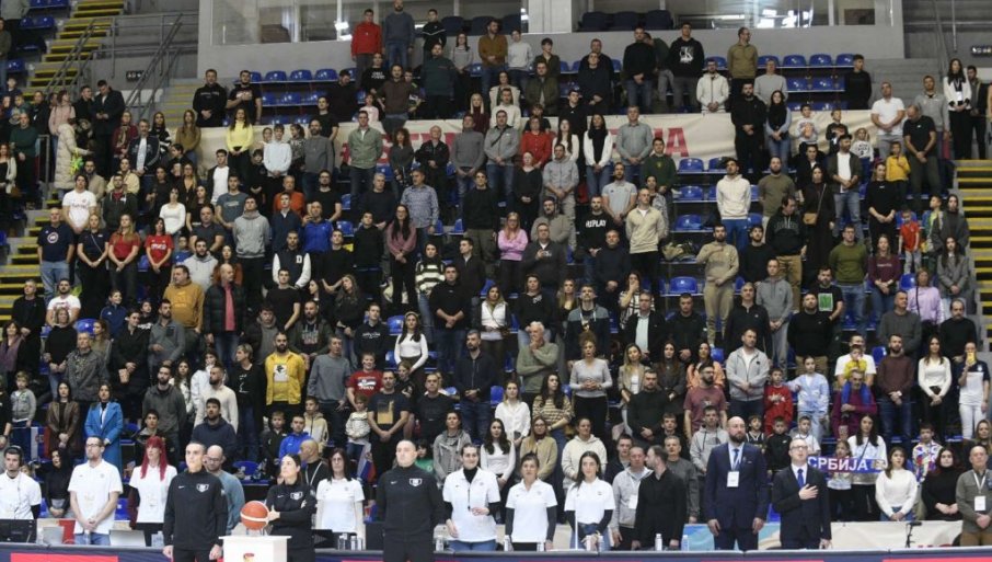 1' - Утакмица је почела! Уз присуство неких од дугогодишњих репрезентативаца Србије на трибинама, попут Мирослава Радуљице, Душка Савановића...