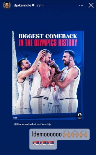"ИДЕМООООО": Новак Ђоковић се огласио после преокрета кошаркашке репрезентације Србије (ФОТО)