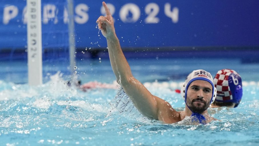 Ватерполо репрезентативац Србије Виктор Рашовић на мечу са Хрватском у финалу Олимпијских игара у Паризу / FOTO: Tanjug/AP