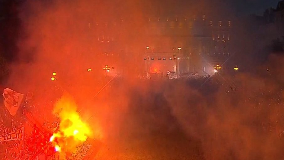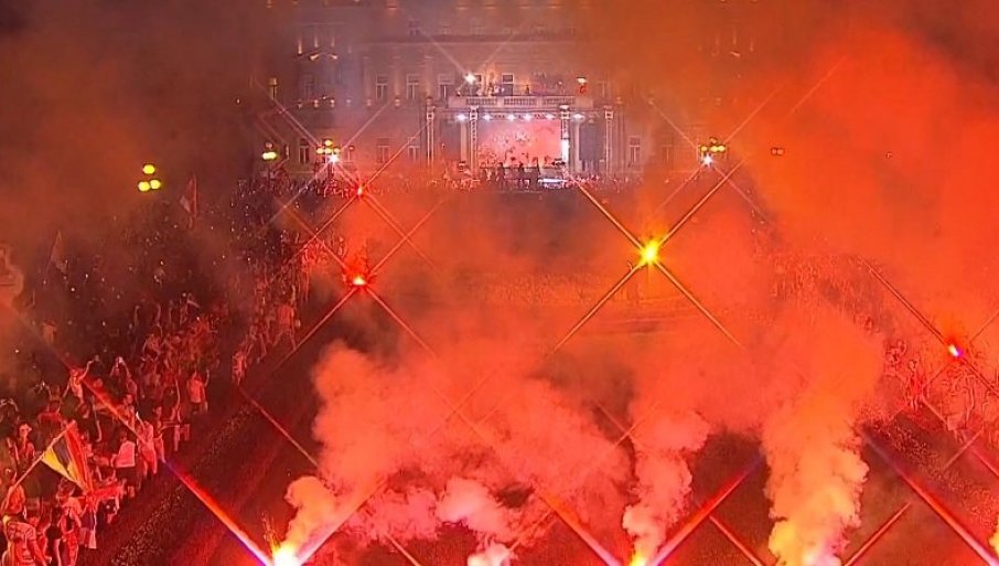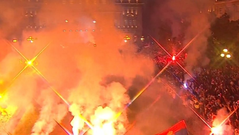 Бакљада када је Јокић изашао на балкон / Printscreen RTS