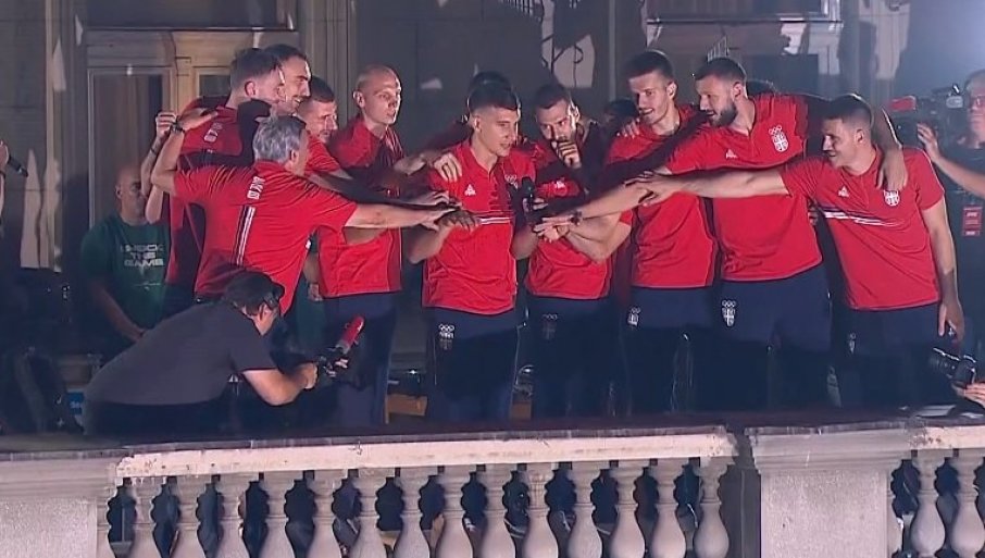 Поздрав кошаркаша Србије на дочеку олимпијаца / Printscreen RTS