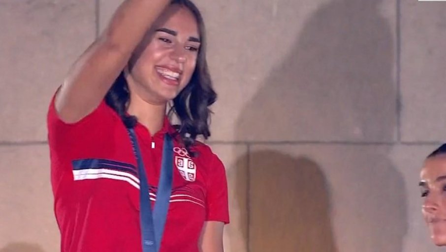 Александра Перишић на дочеку олимпијаца / Printscreen RTS