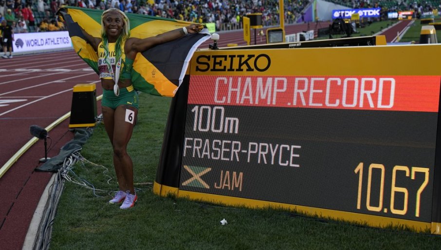 НОВИМ рекордом светских првенстава није само потврдила доминацију која траје више од деценије. Спринтерка са Јамајке Шели Ен Фрејзер Прајс постала је прва жена која је на светским првенствима освојила пет златних медаља у једној дисциплини тркачког програма.