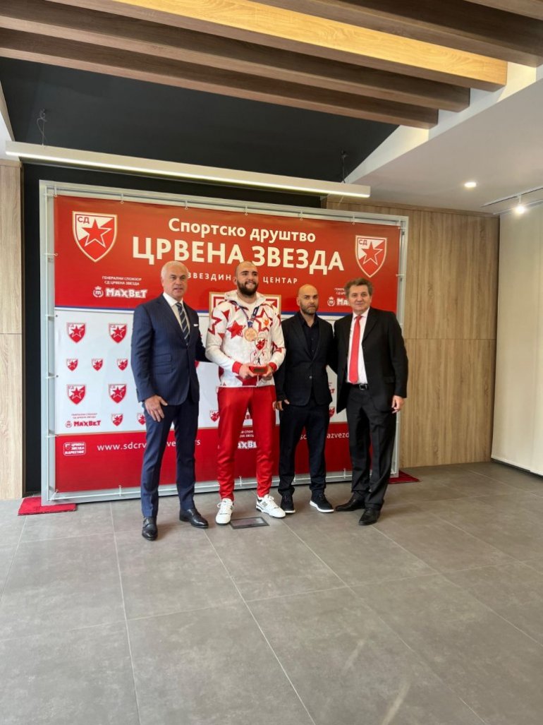 У ПРЕС сали спортског друштва “Црвена звезда” директор Звездан Терзић уручио је специјалну плакету “Наш шампион” која се уручује звездиним спортистима који остваре врхунске резултате на најзначајнијим светским и европским такмичењима.