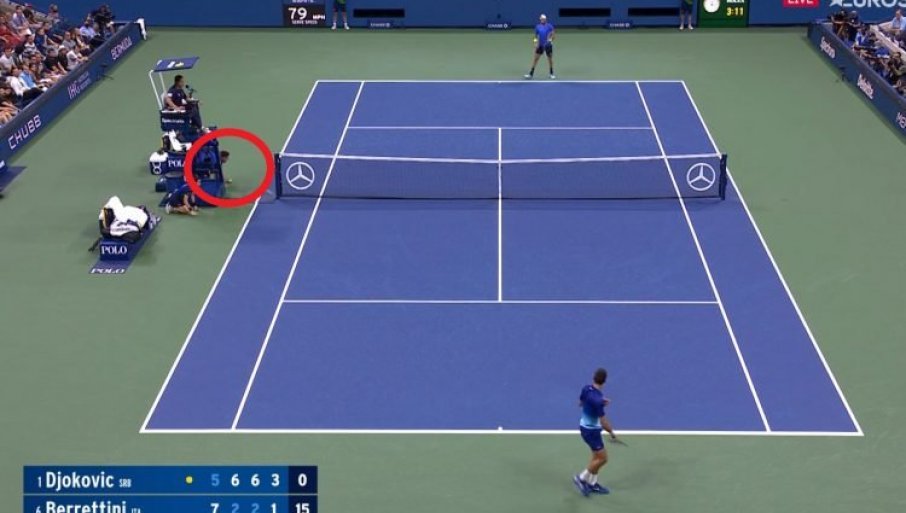 Новак је потом сервирао и у размени је Беретини погодио аут, па је лоптица фактички била ван игре.