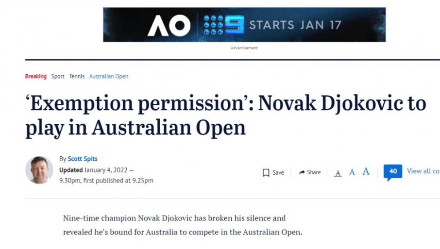 И као по неком неписаном правилу, кренула је хајка на Србина. "Дејли мејл" је под насловом УДАРНО написао: Антиваксер и прва тениска звезда света Новак Ђоковић одлази на Аустралијан опен, упркос ковид правилима која забрањују невакцинисане играче, јер признаје да користи рупу за медицинско изузеће!