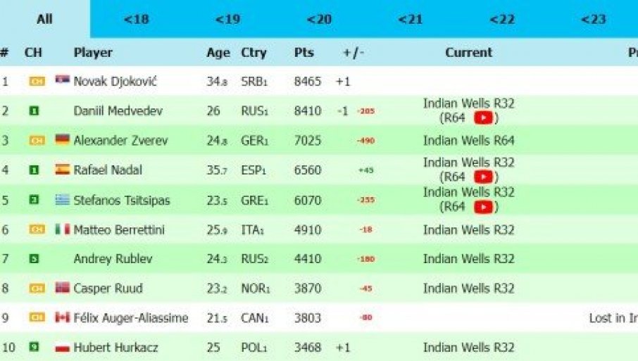 Међутим, АТП данас није објавио листу. Разлог томе је што и даље траје мастерс у Индијан Велсу који је почео пре неколико дана, а Тениска асоцијација професионалаца неће објављивати листу до завршетка такмичења у Калифорнији.