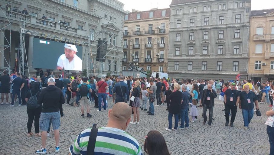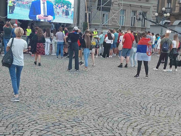 19.33 - Број људи испред Скупштине града Београда, са чијег балкона ће се и обратити шампион Вимблдона, полако расте...