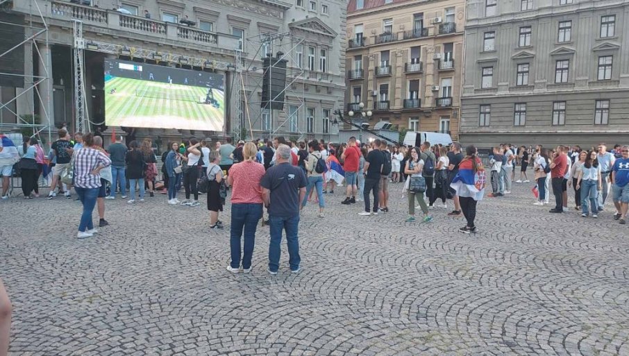 21.22 - Химна је у току, а Ђоковић, који стоји у просторији која води на балкон - пева "Боже правде!". Ускоро ће изаћи пред окупљене грађане.