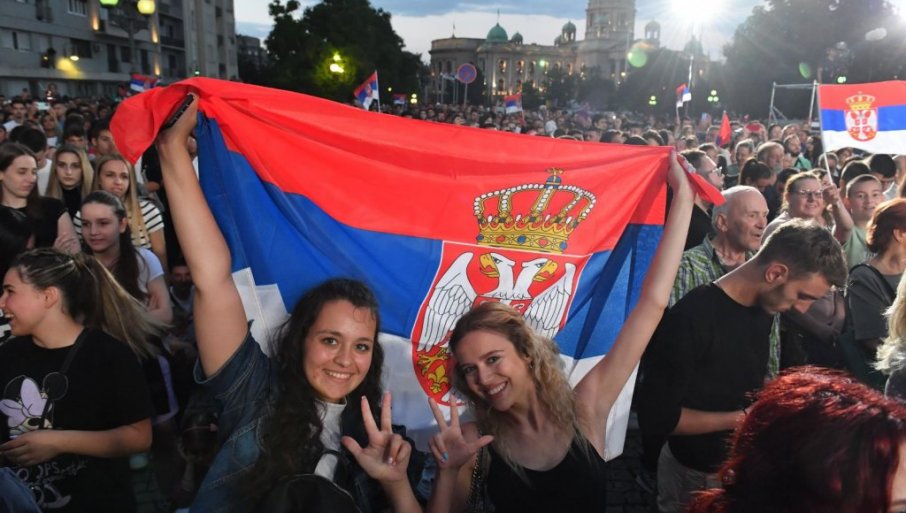 21.20 - Окупљени грађани су управо обавештени да је Ноле стигао у здање Старог двора и да ће им се ускоро обратити, а претходно ће чланови хора "Чаролија" отпевати химну Републике Србије, "Боже правде".