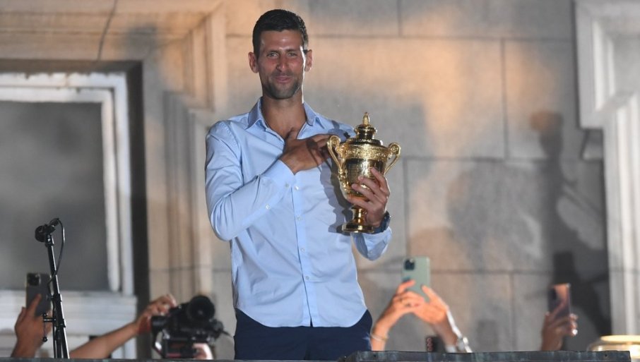 Новак Ђоковић на свечаном дочеку у Београду после освајања Вимблдона 2022 / Фото: М. Вукадиновић