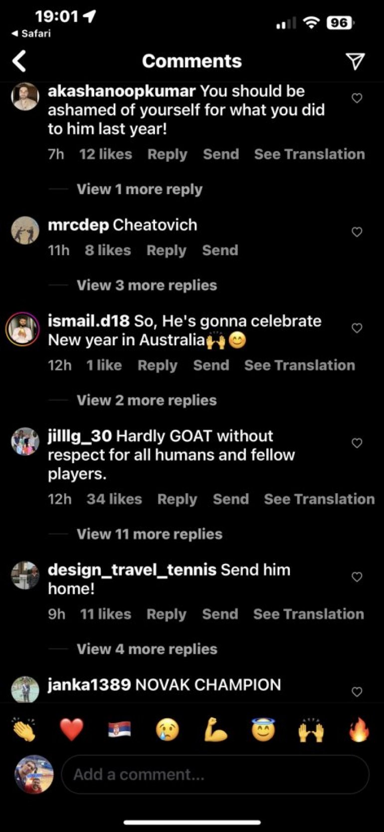 Било је јако много присталица српског тенисера које је ова вест обрадовала, али је био и велики број поменутих порука мржње.
