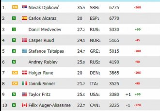 Што се тиче осталих позиција, већих промена није било осим тога да су Тејлор Фриц и Феликс Оже-Алијасим разменили места, па је Американац сада девети, док је Канађанин на 10. месту.