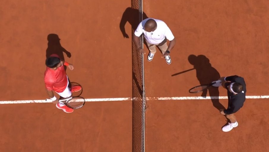 4:1 - Како се само разиграо Ноле... маестрално је одиграо "свој" гем, а онда сео на своју столицу и од судије тражио да се што пре уклони вишак шљаке који се накупио код основне линије. Толика количина може да буде опасна приликом брзог кретања тенисера, па је Ђоковић тражио да се приликом следеће "промене страна" надлежни побрину за овај проблем. Арбитар је упитао Бугарина да ли се слаже са тим, а овај потврдно климнуо главом.