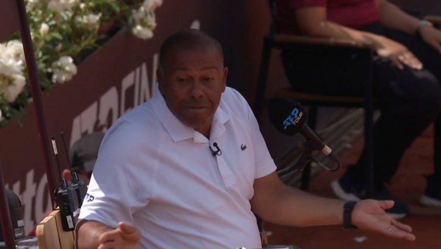 Карлос Бернандеш објашњава Димитрову да нико није узвикнуо "аут!" / Фото: TennisTV