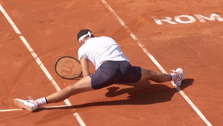 Шпага коју је Григор Димитров направио током другог сета меча против Ђоковића у Риму / Фото: TennisTV