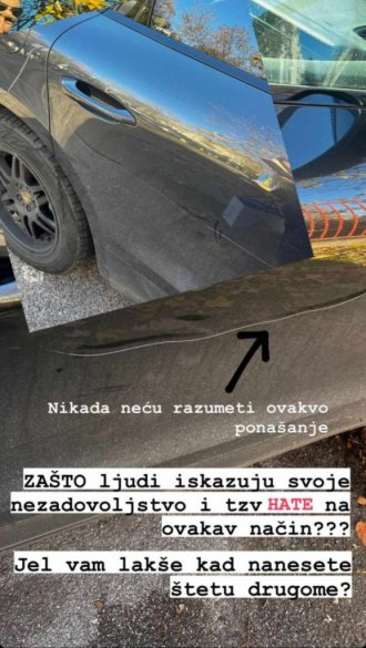 Она је на Инстаграму показала на шта јој личи аутомобил после проласка на паркингу непознатог починиоца са кључем.