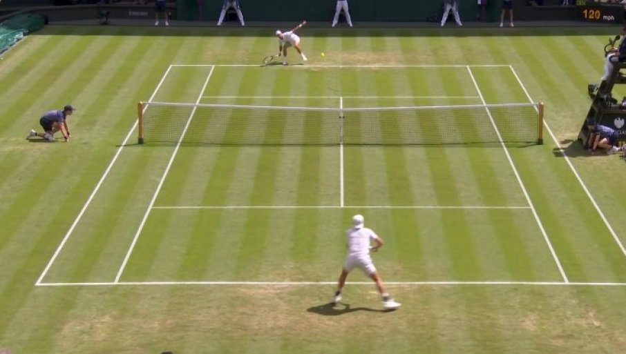 5:4 - Мало се нервирао Ноле (опет), сада на сервисе супарника, јер га је "имао у шаци", на 40:40 пробао да форхенд паралелом дође до брејк лопте и... за мало промашио место где се спајају чеона и бочна линија. То је прилично агресивни Фернли искористио да брзо освоји и наредни поен, па ће Ноле морати да сервира не би ли освојио овај сет.