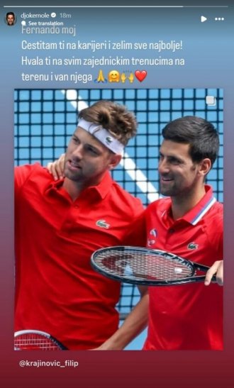 Најбољи тенисер свих времена Новак Ђоковић није пропустио прилику да се огласи на друштвеним мрежама поводом вести о завршетку професионалне тениске каријере његовог колеге Филипа Крајиновића.