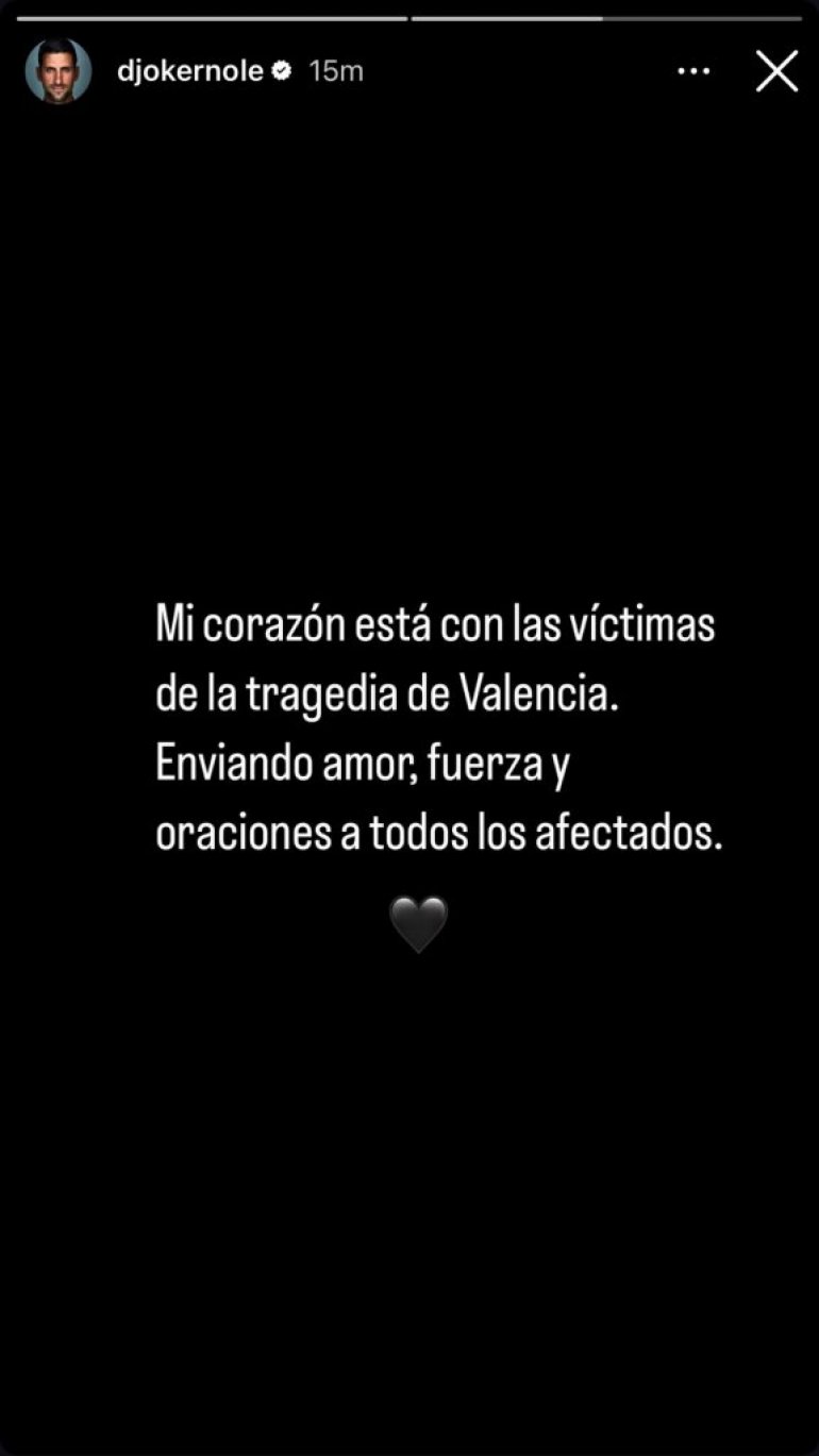 - Моје срце је са жртвама трагедије у Валенсији. Шаљем љубав, снагу и молитве свима који су погођени трагедијом - стоји у објави на Инстаграму освајача 24 гренд слем титуле и актуелног олимпијског шампиона.