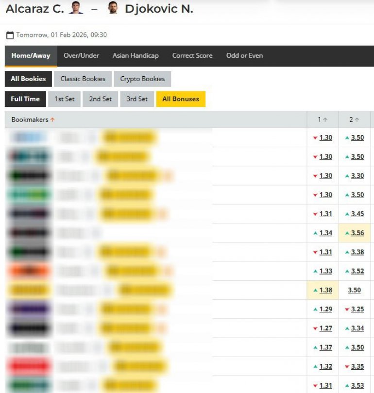 Квоте у кладионицама на меч Новак Ђоковић - Карлос Алкараз у финалу Аустралијан опена 2026 / Screenshot
