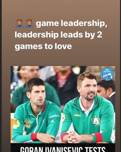 - Организовали турнир, лидери воде са 2:0 у гемовима”, окачио је на Инстаграму Кирјос, алудирајући на то што су Новак и Горан позитивни на вирус корона.