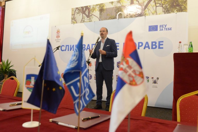 Уз челнике локалних самоуправа, потписивању споразума присуствовали су и Сем Фабрици, шеф Делегације ЕУ у Србији, Марко Благојевић, директор Канцеларије за управљање јавним улагањима, Франсин Пикап, стална представница УНДП у Србији, као и други бројни гости.