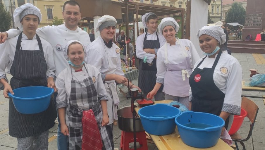 - Прошле године смо припремили најукуснији ајвар и победили, надамо се да ћемо успех поновити - каже професор Борисав Ловић, који предводи екипу ученика кувара средње Економске школе у Зрењанину.