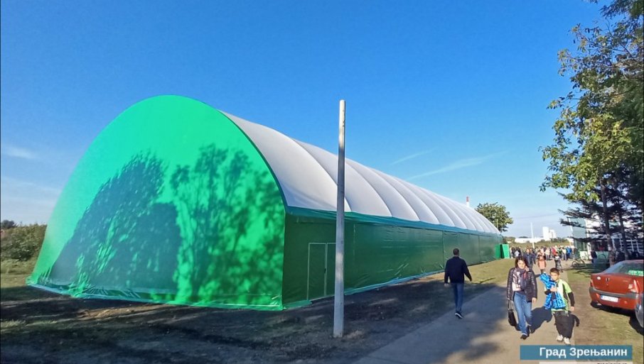 ДА СЕ ТРЕНИРА И ТОКОМ ЗИМЕ: Модеран фудбалски балон у насељу Мужља (ФОТО)