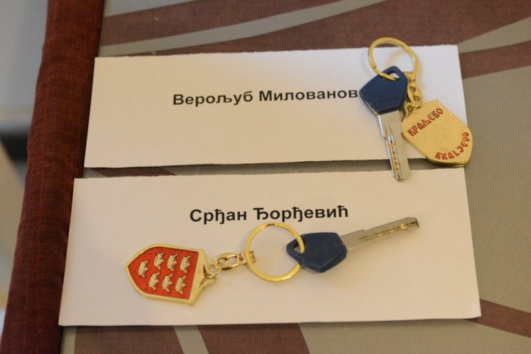 МИНИСТАР грађевинарства, саобраћаја и инфраструктуре Томислав Момировић, представница Развојне банке Савета Европе Нађа Грочкова Леруст и градоначелника Краљева др Предраг Терзић су у свечаној сали Градске управе присуствовали уручивању кључева за првих пет станова у новој вишеспратници саграђеној у Радничком насељу, тешко оштећеном током земљотреса који је 2010. погодио овај крај.