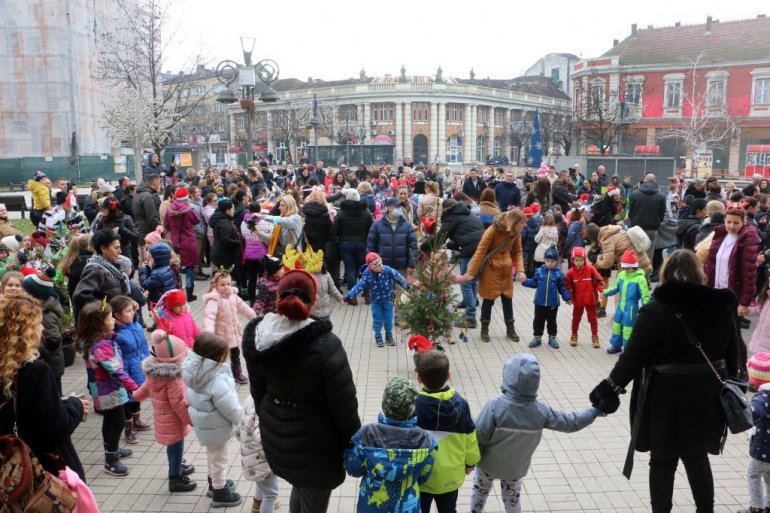 ПРЕДШКОЛСКА установа “Наша радост” данас је на Градском тргу за своје малишане организовала малу забаву, на којој су деца са својим васпитачицама китила јелке украсима које су сами направили у вртићу.
