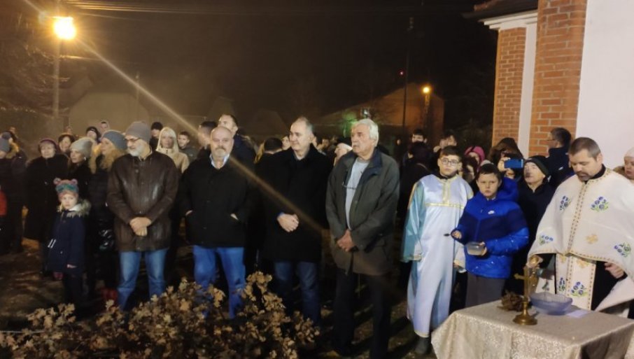 КЛЕЧАНИ ПО ТРАДИЦИЈИ: Испред храма уз Бадњак (ФОТО)