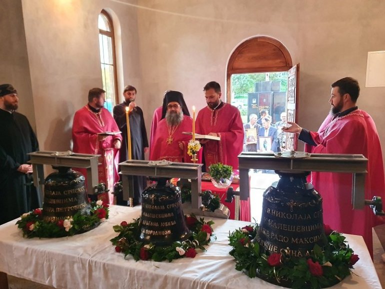 ПО благослову епископа зворничко-тузланског, у новосаграђеном храму Светог владике Николаја охридског и жичког, у Малешевцима код Угљевика, освештани су крстови и звона.