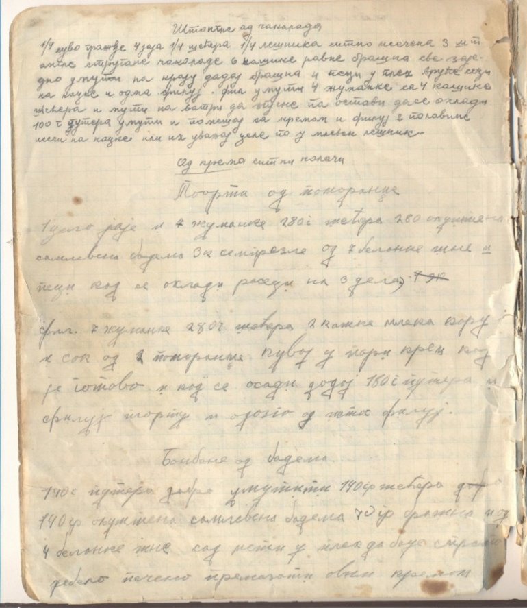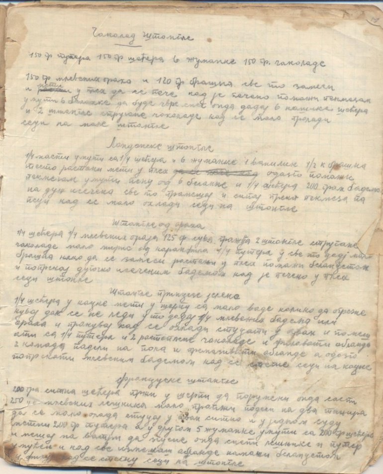 "Крофне од кромпира", "путер", "рум", "маргеритен торта", права стара "добошица", само су неки од нађених, ручно уписаних рецепата, који су у књизи објављени у оригиналу, али и прекуцани како би се боље разумели. Књигу прати и посебан "речник" коришћених кулинарских термина.