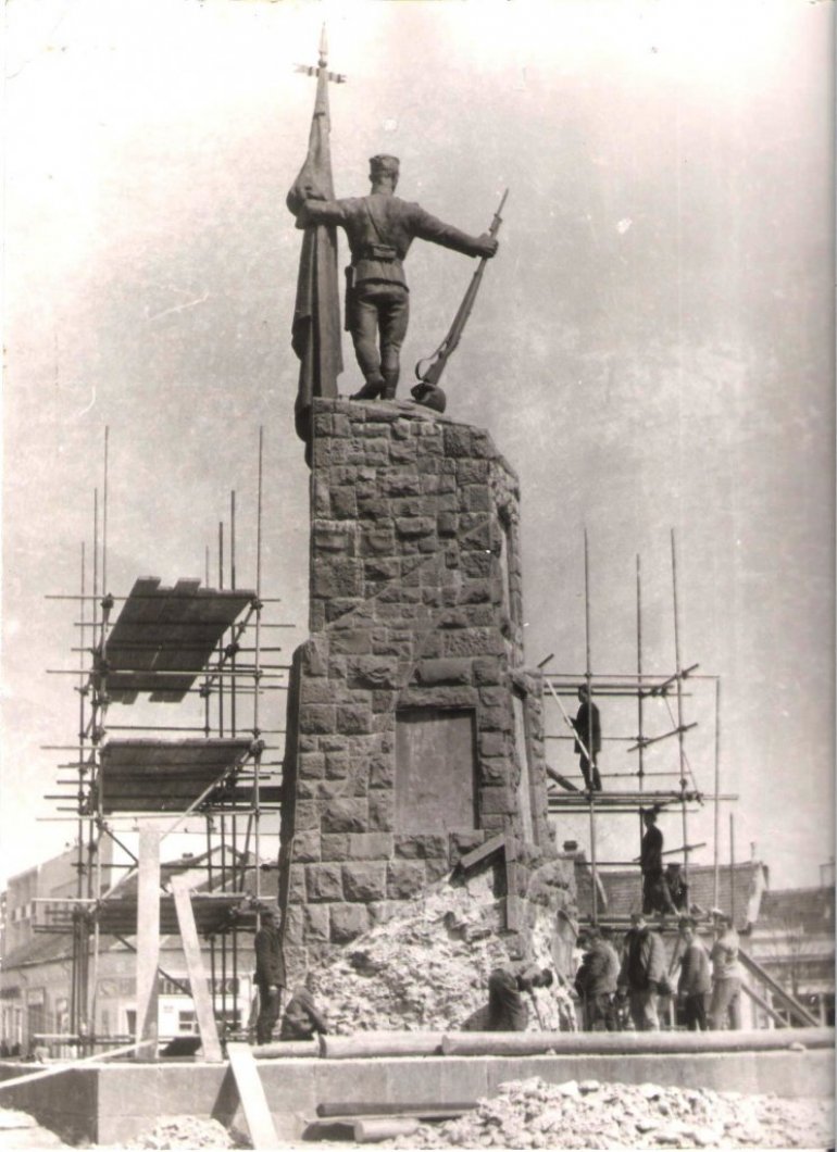 - Изградњу споменика је започео Пододбор Удружења резервних официра и ратника 1928, на десетогодишњицу завршетка Првог светског рата. Ово, међутим, нису подржавале овдашње кафеџије. Наиме, у то време на централном тргу је била пијаца, па су се кафеџије вероватно прибојавале да ће споменик отерати сељаке из околних села који су својом муком зарађени новац остављали након пијачног дана у њиховим кафанама - наставља историчар Трифуновић.