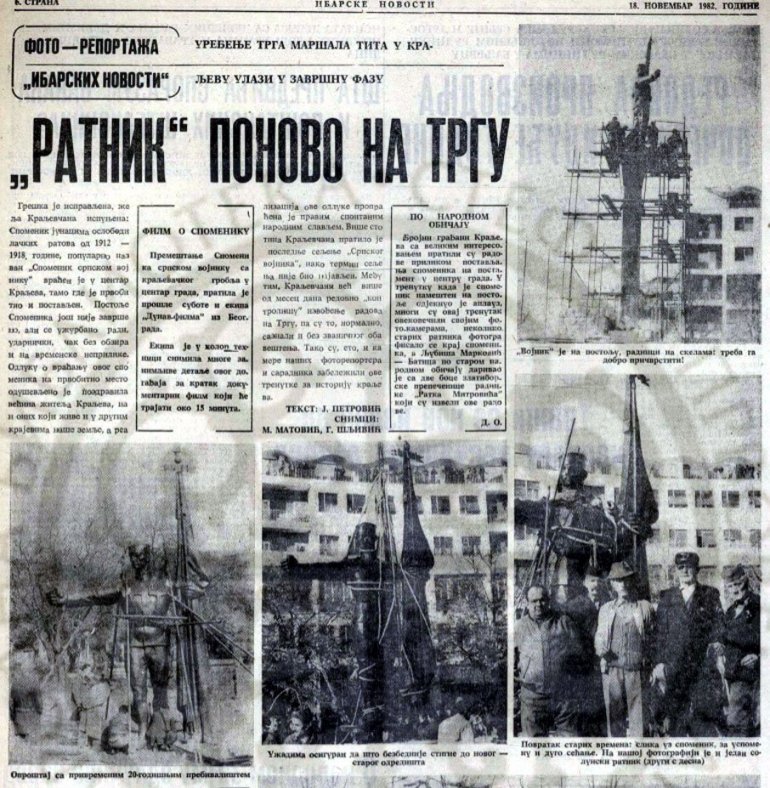 ВРАЋАЊЕ споменика на централни градски трг 1982. био је први задатак данашњег фото-репортера "Новости" Горана Шљивића за овдашњи, веома угледни и читани недељник "Ибарске новости".