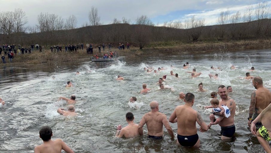 ПО КИШИ ДО ЧАСНОГ КРСТА: Више од 70 пливача на Богојављенском пливању на Грзи (ФОТО)