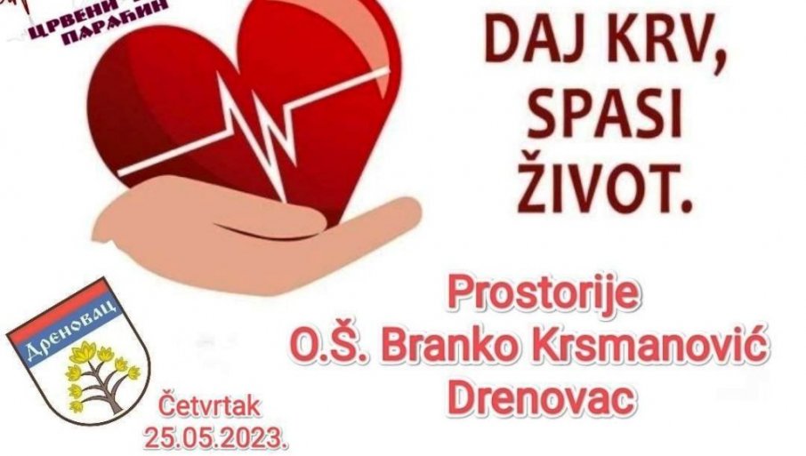 ПОВОДОМ сеоске славе Спасовдан, у великом селу Дреновац код Параћина у четвртак, 25. маја, биће организована акција добровољног давалаштва крви.