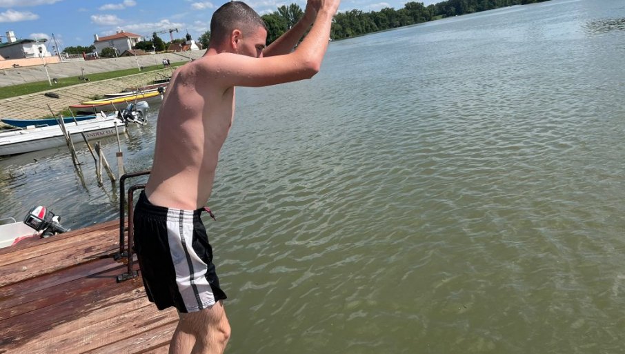 Давид и Вук, средњошколци из Новог Бечеја данас су, у ишчекивању цветања Тисе, отворили сезону купања у Тиси.