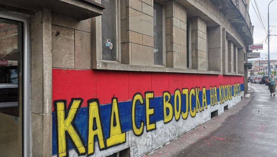 ОГРОМАН мурал са српском тробојком и поруком „Кад се војска на Косово врати...“ освануо је на фасади зграде у Балканској улици у ужем центру Крушевца ове недеље.