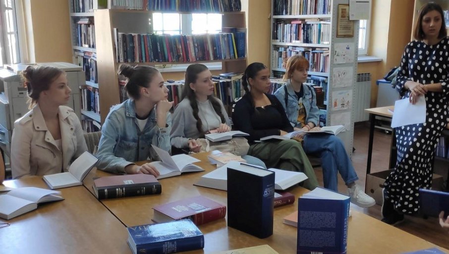 У овој установи која деценијама шири љубав према књизи и читању, посебно код деце и младих, данас је за заинтересоване посетиоце – ученике прве и треће године Гимназије, са њиховом професорком српског језика и књижевности Маријом Лукић, уприличена радионица која је започела питањем: Колико смо писмени?