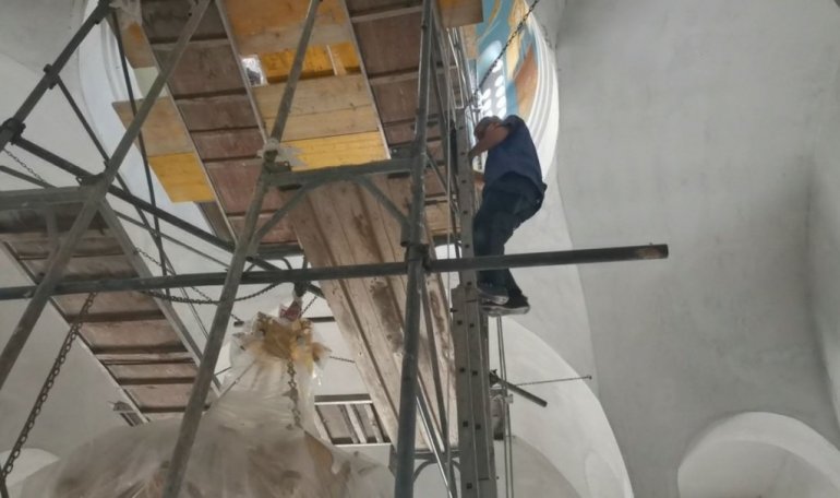 - Напорно је, али је и благодет. Радим са грчким, акрилним бојама, а подлога је од кречног глета. Још нема првих реакција, јер од скела мало тога може да се види, али се надам да ће бити позитивне - истиче живописац којем се, кад год сиђе, поглед заустави на олтару који је својевремено осликавао, заједно са првим иконама.