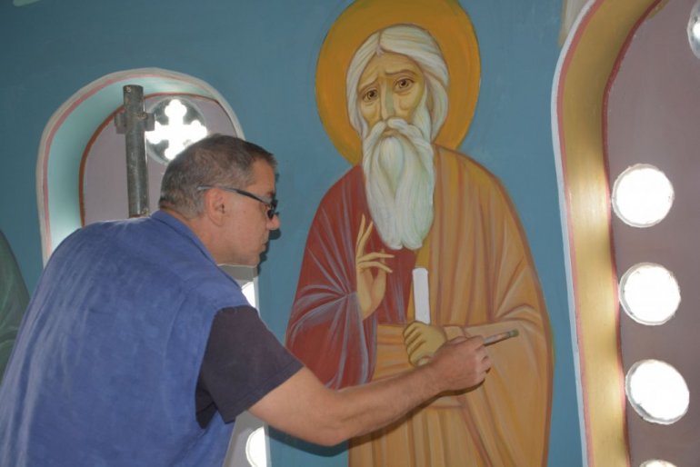 Прву икону, у богомољи Светог Атанасија Великог, осликао је пре више од 20 година, када је црква и изграђена. Олтар је осликао пре пет година, а ове јесени, на скелама живопише куполу на 11 метара висине...
